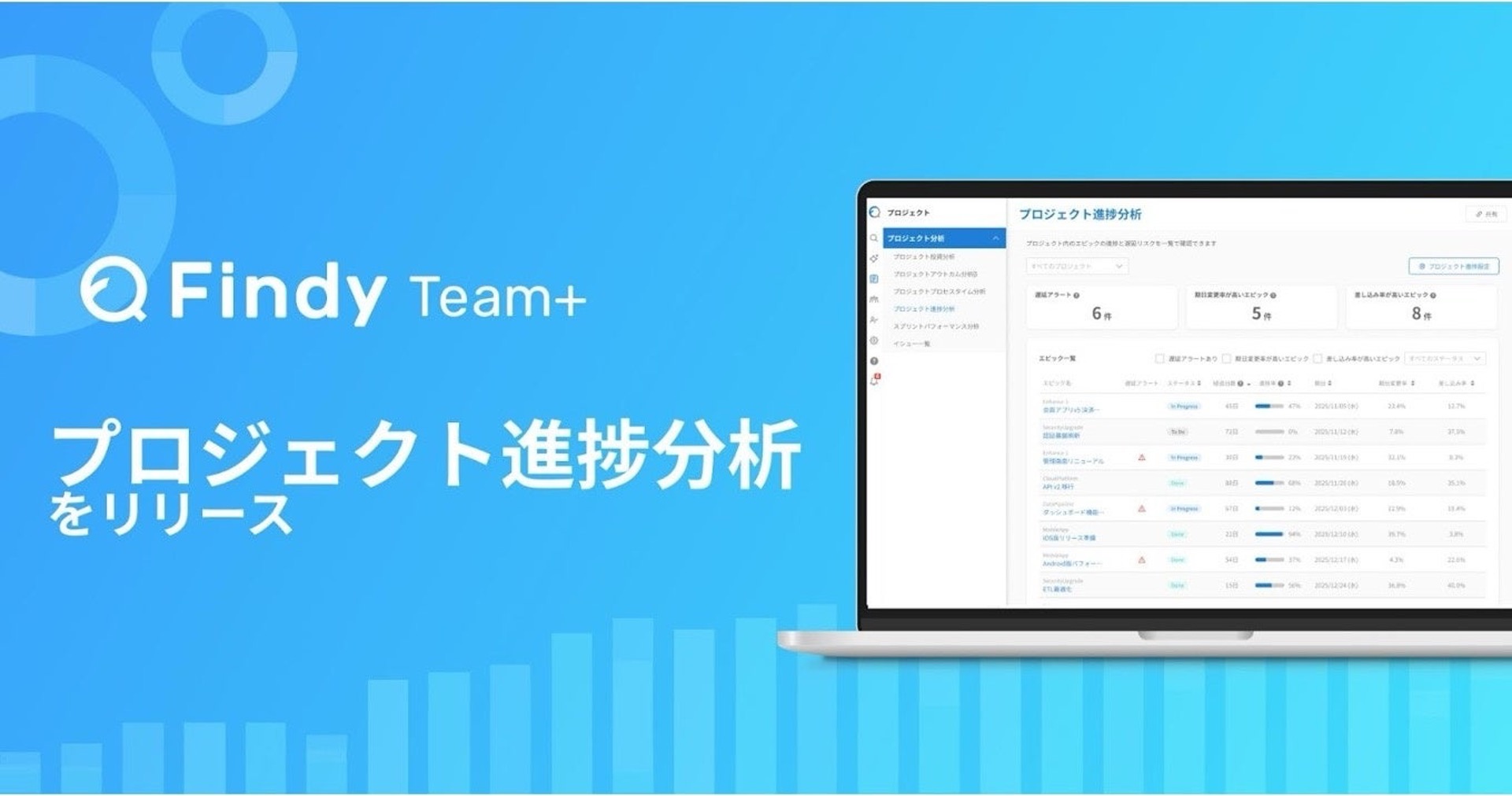 「Findy Team+」の機能拡充!複数プロジェクトの「進捗と遅延リスク」を横断的に可視化する新機能「プロジェクト進捗分析」をリリース