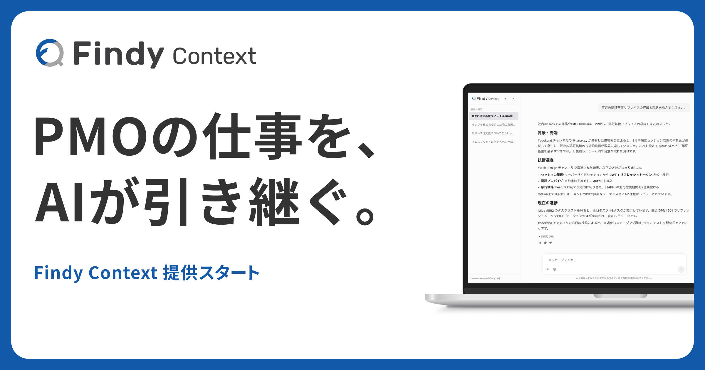 「Findy Context」は、業務フローの中で自然に「文脈」が溜まる仕組みを提供します。